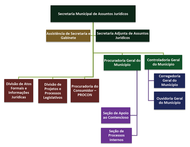A Secretaria Municipal de Assuntos Jurídicos é composta pelos seguintes órgãos: