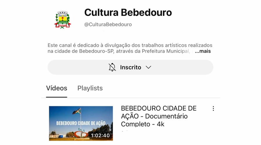 Inscreva-se no canal do Youtube @Cultura Bebedouro.