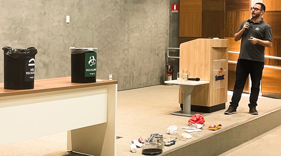 A palestra abordou temas relacionados à sustentabilidade e ao manejo de resíduos sólidos, destacando o atual cenário dos resíduos sólidos no Brasil, incluindo dados alarmantes sobre a geração crescente de lixo e os desafios enfrentados pelos municípios para garantir uma destinação adequada; os impactos ambientais da destinação incorreta de resíduos, como poluição do solo e da água, proliferação de doenças e emissão de gases do efeito estufa; a importância da separação correta e do papel individual na reciclagem, reforçando que a contribuição de cada cidadão é essencial para o sucesso do programa; e o engajamento das escolas na educação ambiental, na formação de uma geração mais consciente e comprometida com o Meio Ambiente.