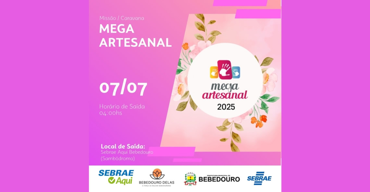A Prefeitura de Bebedouro, por meio do Sebrae Aqui, está com inscrições abertas para a Missão Mega Artesanal 2025, uma caravana para o maior evento de artesanato do Brasil. A iniciativa tem como objetivo proporcionar aos artesãos da cidade e região, a oportunidade de conhecer as principais tendências, novidades, técnicas e materiais do setor, além de estimular o networking e a capacitação profissional.