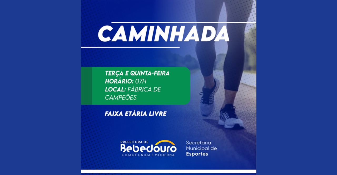 A Prefeitura de Bebedouro, através da Secretaria Municipal de Esportes (SME), oferece para toda a população Caminhada, uma atividade simples, acessível e que traz inúmeros benefícios para a saúde física e mental.