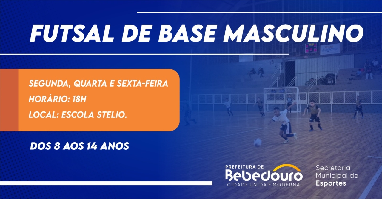 A Prefeitura de Bebedouro, por meio da Secretaria Municipal de Esportes (SME), oferece gratuitamente aulas de Futsal de Base Masculino, uma oportunidade para crianças e adolescentes desenvolverem habilidades esportivas, disciplina e trabalho em equipe.