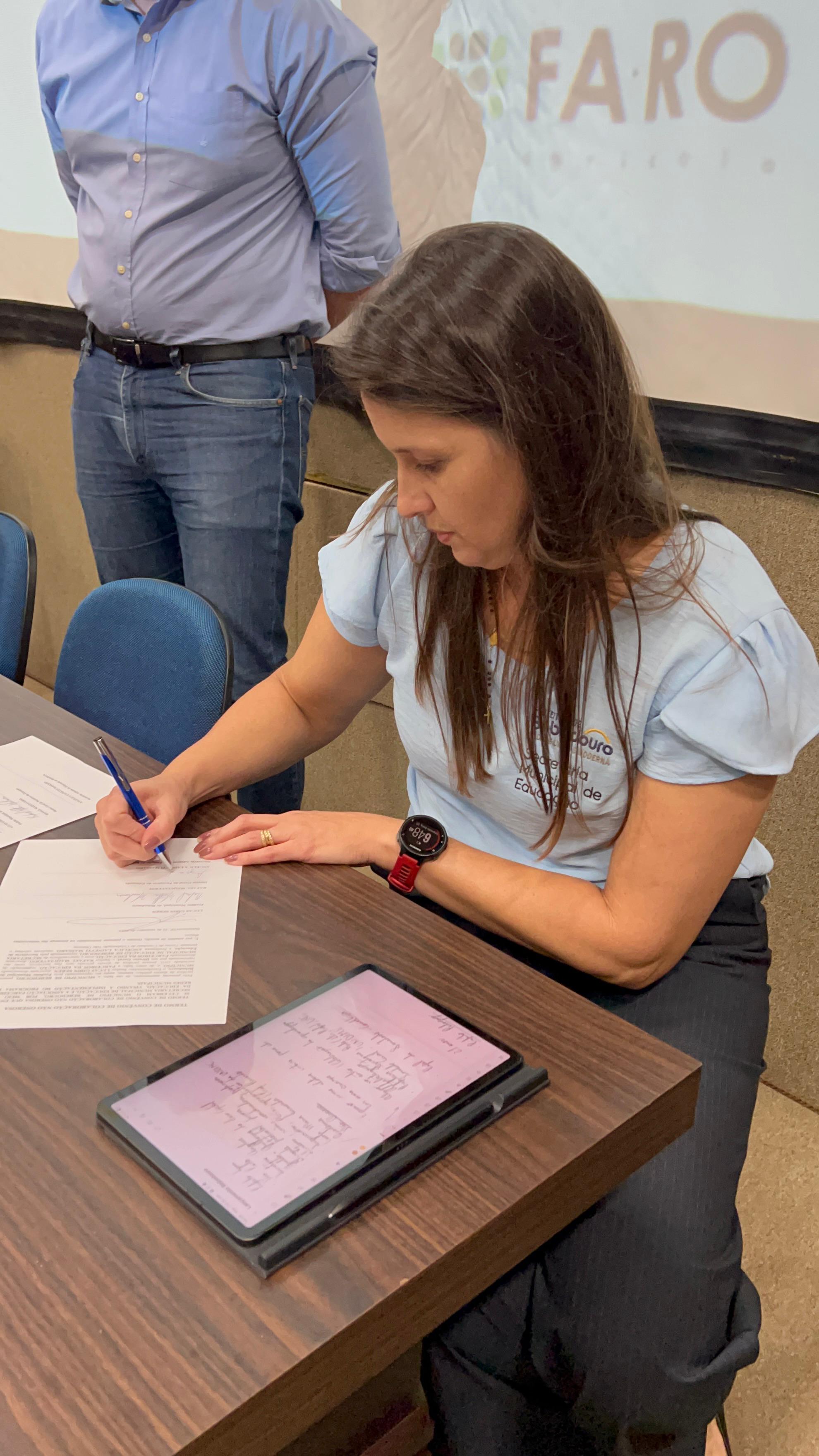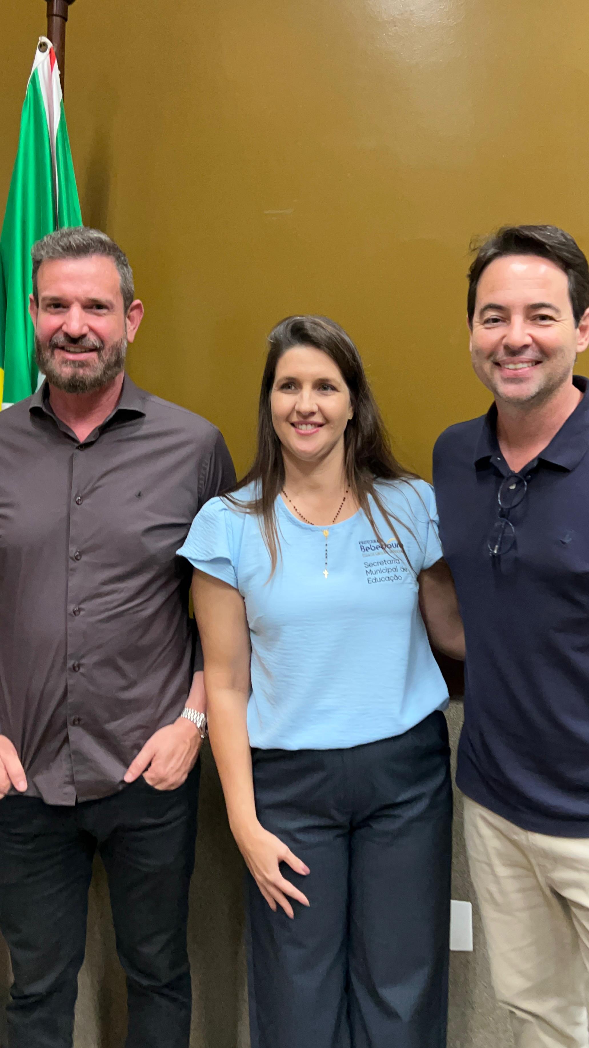 Na sequência, foi formalizada a assinatura do convênio entre o prefeito Lucas Seren, o diretor geral da Parceiros da Educação, Rafael Maquiaverni, e a secretária adjunta de Educação, professora Angélica Lainetti Massaro. A parceria fortalece a rede municipal de ensino e integra Bebedouro a um projeto que já impacta mais de 700 escolas e 400 mil alunos em todo o Estado de São Paulo.