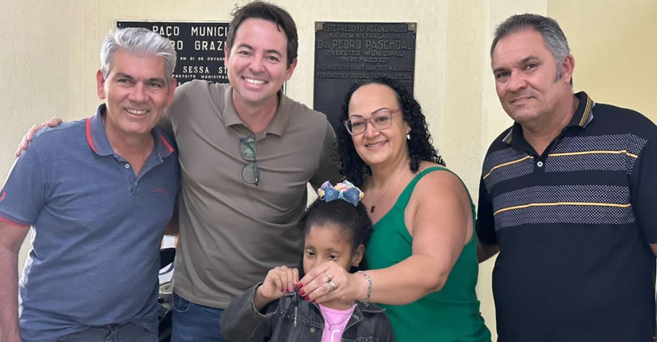 A contemplada recebeu a chave da moto das mãos do prefeito Lucas Seren, acompanhado do vice-prefeito, Paulo Bianchini e da família da contemplada, na tarde da terça-feira (21/10), na prefeitura municipal.