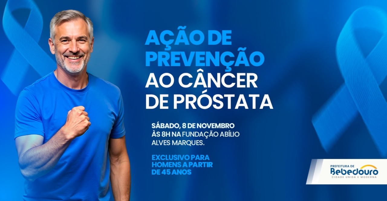 A Prefeitura de Bebedouro, através da Secretaria Municipal de Saúde (SMS), realiza neste sábado, 08 de novembro, às 8h, uma ação de prevenção ao câncer de próstata, na Fundação Abílio Alves Marques.