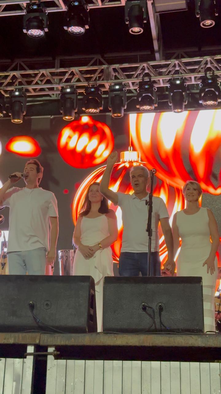 A programação teve início às 21h com a animação do DJ Luppi, que aqueceu o público para uma noite especial. Na sequência, o palco recebeu muito pagode com Negro PH e convidados especiais, além das apresentações do grupo Jeito Dellas e do cantor Andrinho, que embalaram o público até a tradicional contagem regressiva para o Ano Novo.