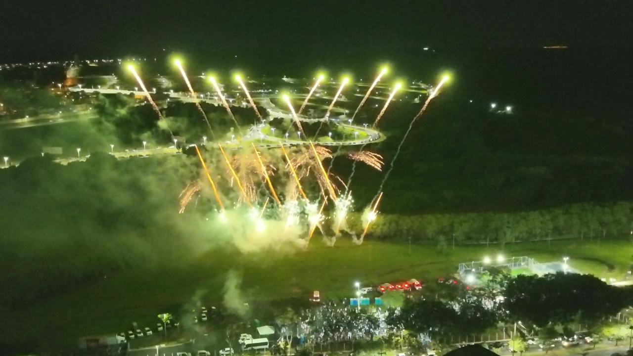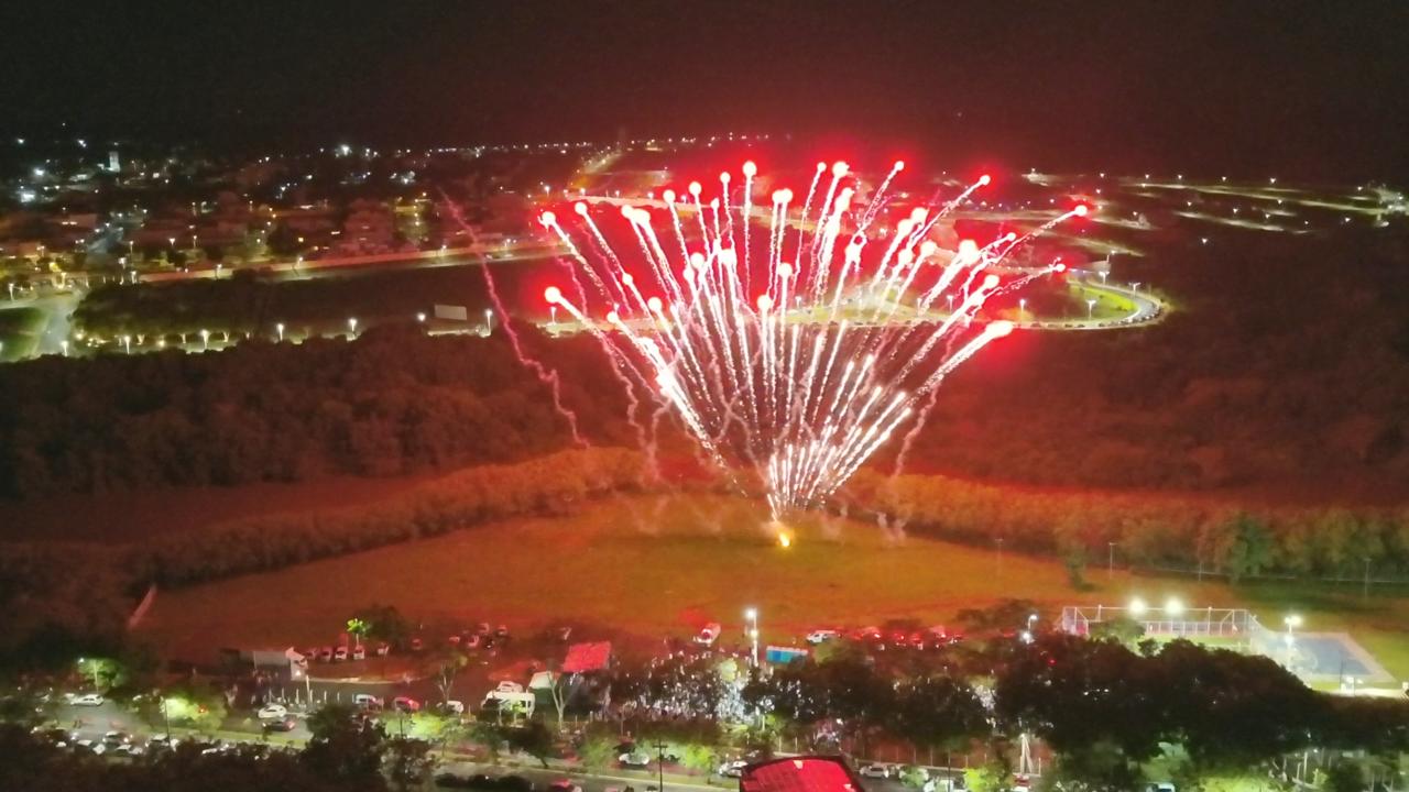 À meia-noite, os presentes acompanharam a queima de fogos, que voltou a fazer parte das comemorações em Bebedouro, proporcionando um verdadeiro espetáculo de luzes no céu. Os fogos utilizados foram sem estampidos, em conformidade com a legislação municipal, garantindo um momento inclusivo, seguro e respeitoso para crianças, idosos, pessoas com sensibilidade auditiva e animais.