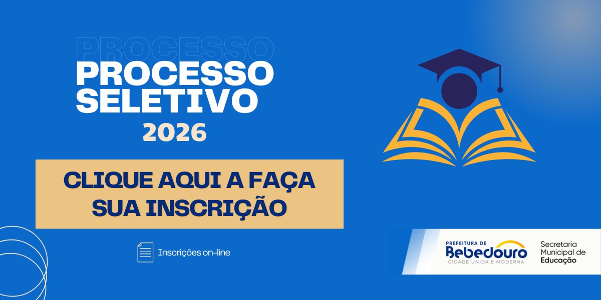 A Prefeitura de Bebedouro, através da Secretaria Municipal de Educação, abre as inscrições para o Processo Seletivo Simplificado Nº 001/2026 destinado à formação de cadastro de reserva para contratação temporária, em regime rotativo, de professores substitutos e professores eventuais, que será realizado única e exclusivamente pela análise curricular e de títulos, conforme as disposições do edital.