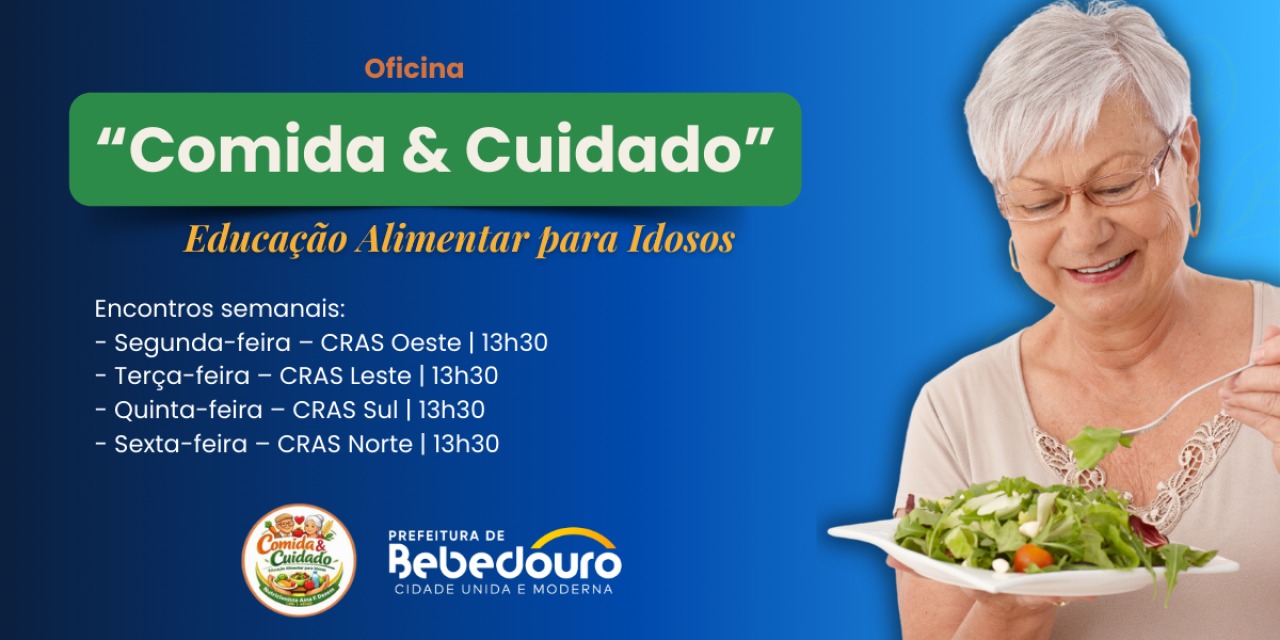 A Prefeitura de Bebedouro, através da Secretaria de Desenvolvimento Social e Cidadania, iniciou no CRAS Oeste a oficina “Comida & Cuidado – Educação Alimentar para Idosos”, uma das ações desenvolvidas pelo Serviço de Convivência e Fortalecimento de Vínculos (SCFV).