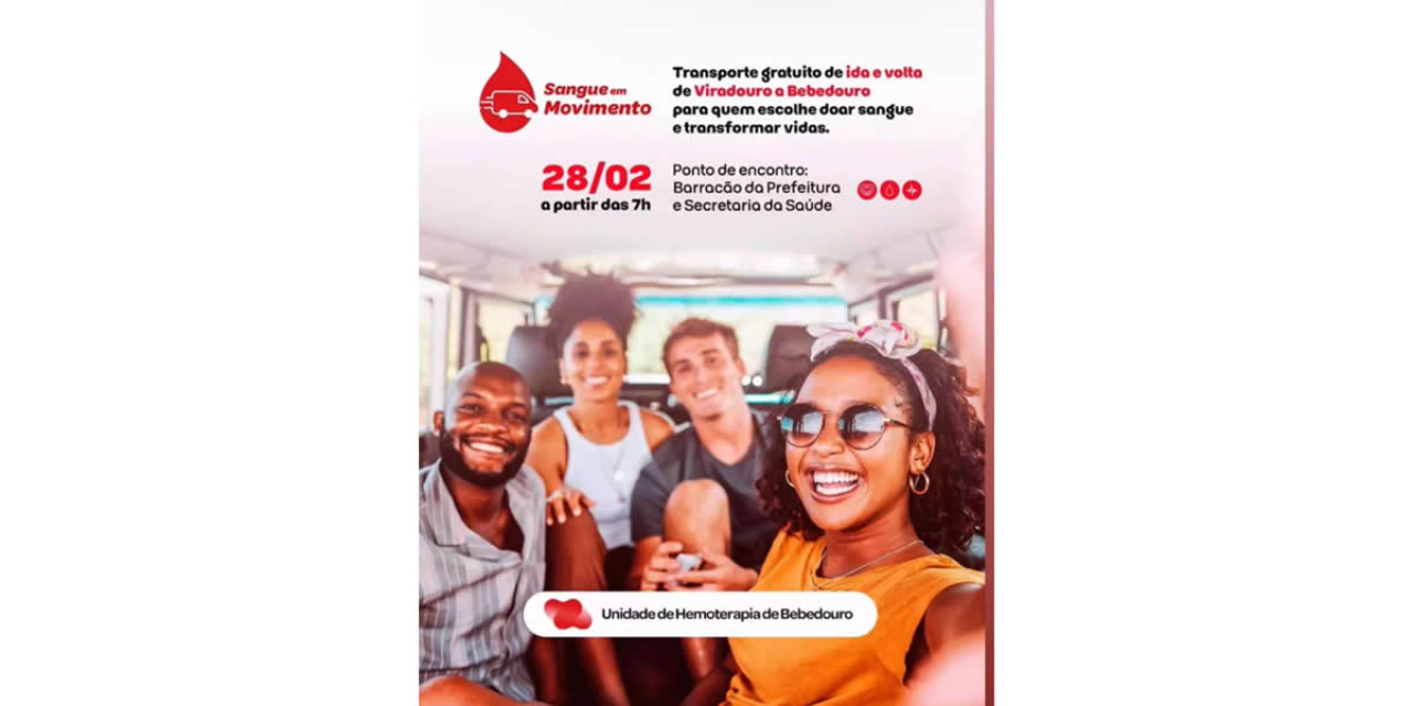 O Projeto Sangue em Movimento, facilita o acesso à doação de sangue para moradores da região, oferecendo transporte gratuito até a Unidade de Hemoterapia de Bebedouro.