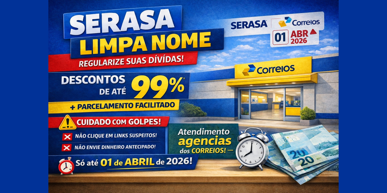 A Prefeitura de Bebedouro, através do Procon Municipal, informa que teve início o programa Serasa Limpa Nome, uma parceria entre a Serasa e os Correios, com prazo até 01 de abril.