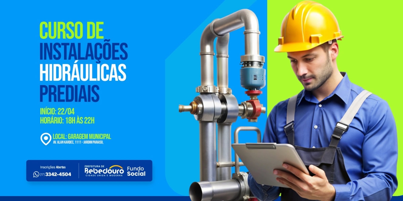 A Prefeitura de Bebedouro, através da Secretaria Municipal de Desenvolvimento Econômico, tem inscrições abertas para o curso de Instalações Hidráulicas Prediais.