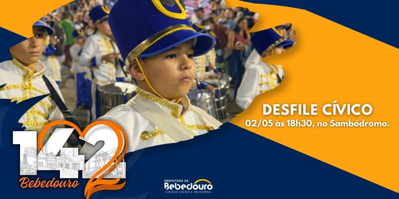 A Prefeitura de Bebedouro, através da Secretaria Municipal de Educação (SEMEB), realiza do Desfile Cívico em comemoração aos 142 anos de Bebedouro. O evento integra o calendário oficial e tem como objetivo valorizar a história local e fortalecer a relação entre educação, cultura e cidadania.