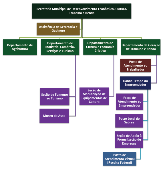 Secretaria Municipal de Desenvolvimento Econômico, Cultura, Trabalho e Renda é composta pelos seguintes órgãos: