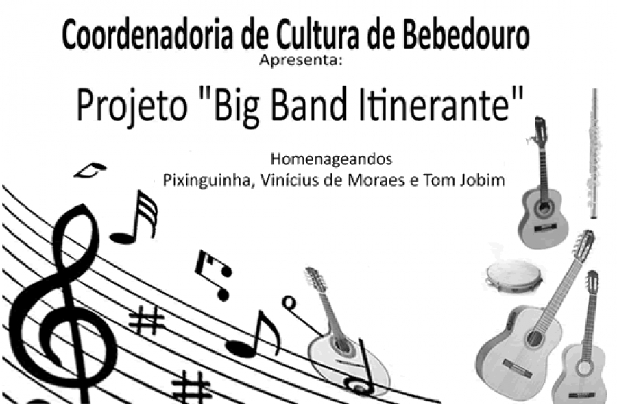 A Prefeitura Municipal de Bebedouro convida a população para prestigiar mais um evento desenvolvido através da Coordenadoria de Cultura, o Projeto “Big Band Itinerante”.