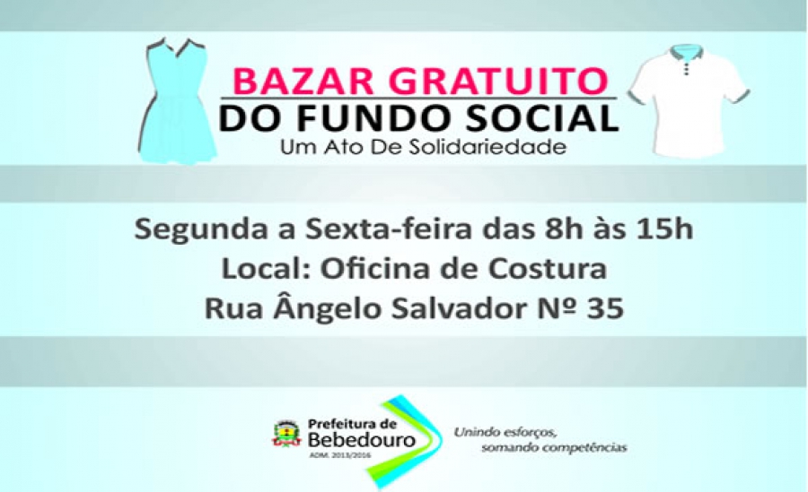 A Prefeitura de Bebedouro, por meio do Fundo Social de Solidariedade, inicia o Bazar Gratuito do Fundo Social, após o término da distribuição nos bairros da Campanha do Agasalho 2014.
