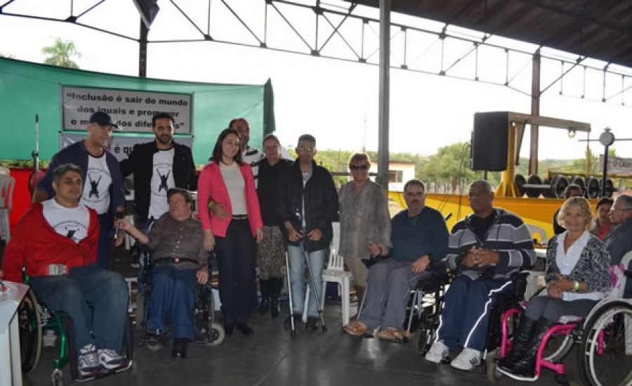 Durante o evento, a presidente do Fundo Social de Solidariedade, Aline Galvão, entregou um par de muletas para Fábio Kimura, que sofreu um acidente automobilístico.