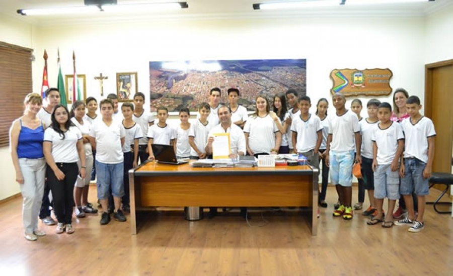 Na tarde da segunda-feira(15), os alunos do 7º ano da escola Paraíso Cavalcanti, acompanhados das professoras Elaine e Francine, visitaram o prefeito municipal, Fernando Galvão, para apresentar projetos para nossa cidade.