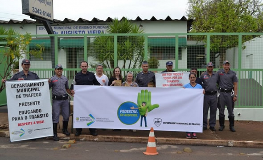 A ação, que fez parte da programação da Semana Nacional do Trânsito, aconteceu próximo a EMEF “Dr. Augusto Vieira” e contou com a participação dos alunos do 4º ano que elaboraram cartazes com frases de conscientização, além de conhecerem o caminhão do Corpo de Bombeiros.