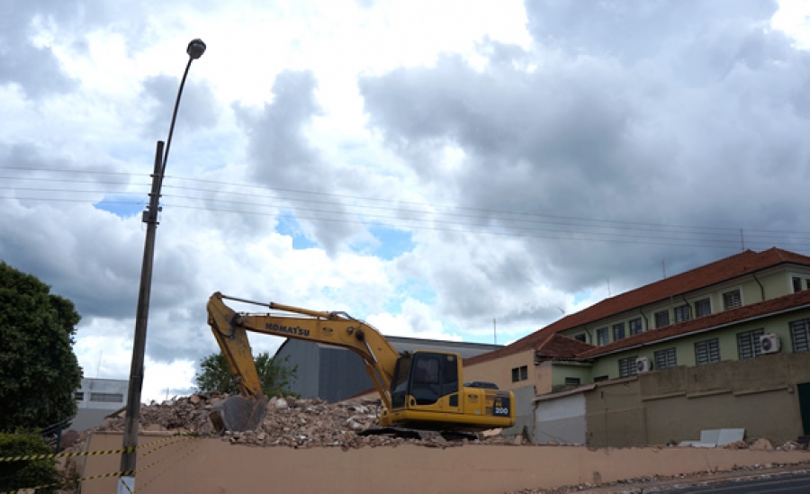 Na terça-feira (10/02) foi iniciado o processo de demolição do antigo prédio para possibilitar a limpeza do terreno e início das obras.