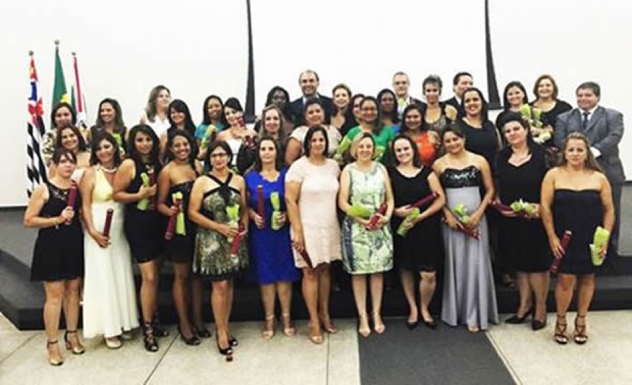 A paraninfa e representante do CEFOR, Maristela Campanelli dos Santos realizou a entrega dos certificados às alunas, Adriana Gomes Pereira da Silva, Adriana de Fátima de Jesus, Alessandra Cristina Paschoim, Alessandra Simone Sarti de Lima, Ana Paula Eugênio Evangelista, Cássia Varallo Cuochi Zanetti, Daniela Antônio de Lima Gallo, Danúbia Graziela do Amaral, Elis Regina da Silva Lima Gonçalves, Evanilda Trivelato Anastácio, Flávia Lourenço Dionízio Nunes, Giovana Tomaz da Silva Cano,