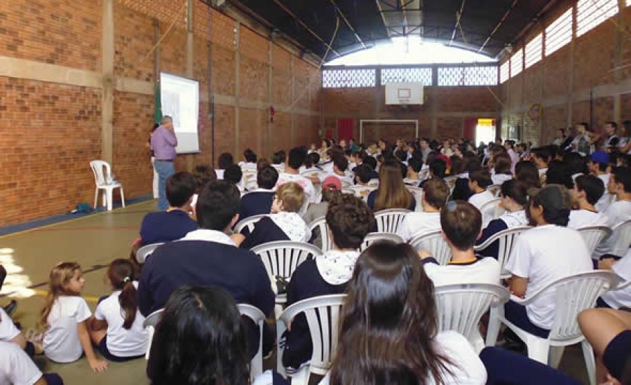 A palestra voltada aos alunos, pais e professores do 2º ao 9º ano do ensino fundamental II, apresentou a crise hídrica vivenciada, principalmente, na região sudeste do país.