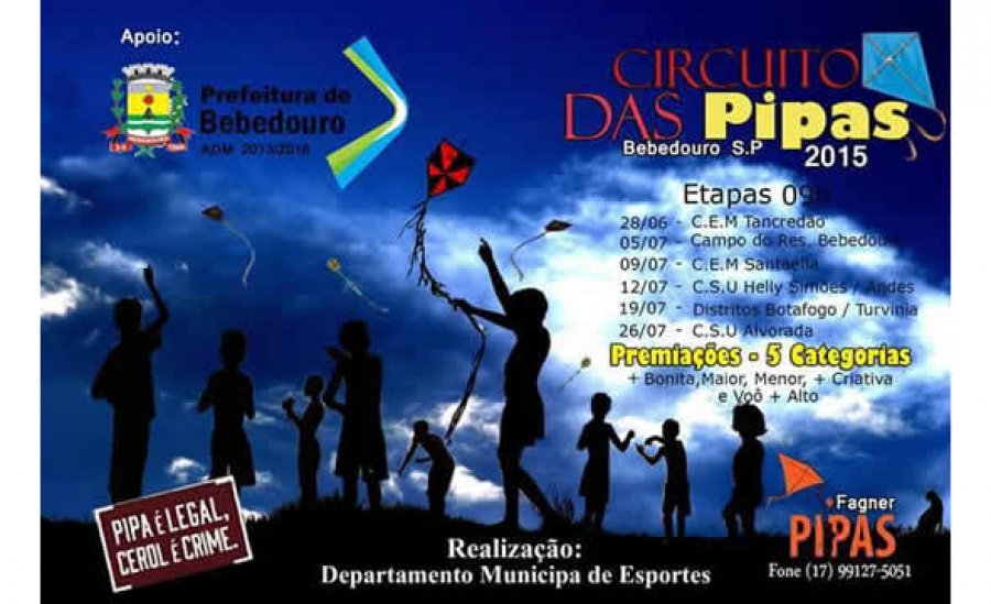 A Prefeitura investe, cada vez mais, no lazer da população. O 1º Circuito de Pipas irá resgatar as antigas brincadeiras em Bebedouro. O evento começa no domingo (28) e segue até o dia 26 de julho.