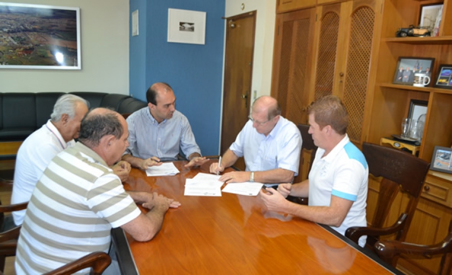 O prefeito Fernando Galvão, Milton Mattar (ACIAB), Marcos Antônio Mutton (ADEBE), Manoel Vasco (SINCOMÈRCIO) e Antônio Rodrigues Sobrinho (CDL) participaram da reunião.
