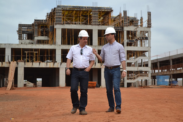 O prefeito de Bebedouro, Fernando Galvão, inspecionou as obras no 4º andar do Hospital Regional, fruto de parceria da Prefeitura e do Governo do Estado. O prédio de cinco andares terá área total de 17 mil metros quadrados, em um investimento de R$ 100 milhões – R$ 40 milhões da obra e R$ 60 milhões em equipamentos, infraestrutura e terreno.