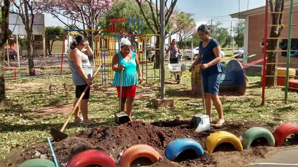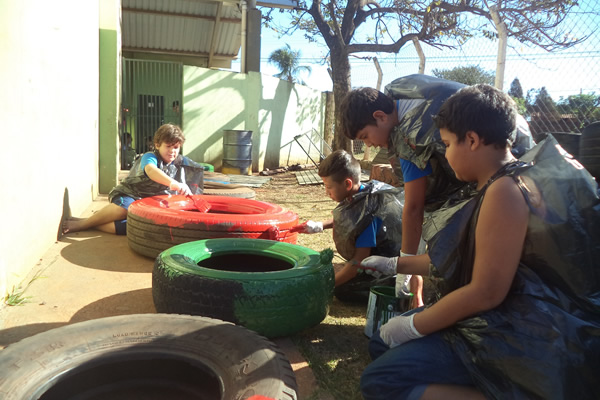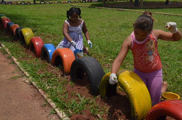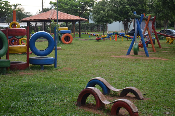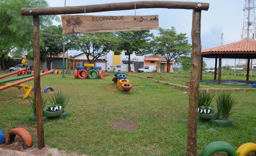 Ecoparque – Os parques são construídos com a colaboração da comunidade escolar, envolvendo funcionários, alunos e pais. Além de trabalhar a sustentabilidade com a reutilização dos pneus, o objetivo foi proporcionar lazer às crianças, pois o brincar é uma maneira de vivenciar experiências, exercitar habilidades, estimular a criatividade e aprender a relacionar-se com os outros e com o meio ambiente.