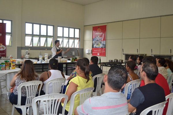 Durante a aula show, o chef preparou pratos variados, como taça de limão com iogurte, tacinha especial, torta capixaba de bacalhau, quiche lorrani com base de tomate e mousse salgada frango.