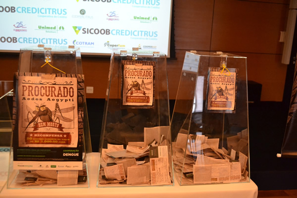 Campanha - A Sicoob Credicitrus lançou a campanha “Cooperação Contra a Dengue” em dezembro, com o objetivo de estimular a população bebedourense a eliminar os criadouros do mosquito da dengue, o Aedes aegypti. E, como estimulo, a Sicoob Credicitrus realizará quatro sorteios, que totalizam 20 cartões vales-presentes no valor de R$ 1 mil cada, para quem estiver com seus quintais em dia contra a doença.