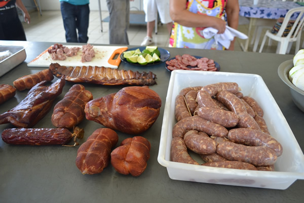 Os alunos tiveram acesso a técnicas de desossa (processo aberto e fechado), aditivos, processamento de linguiça, defumação e conservação, receitas de embutidos, além de processos de tempero e higiene dos alimentos e utensílios.