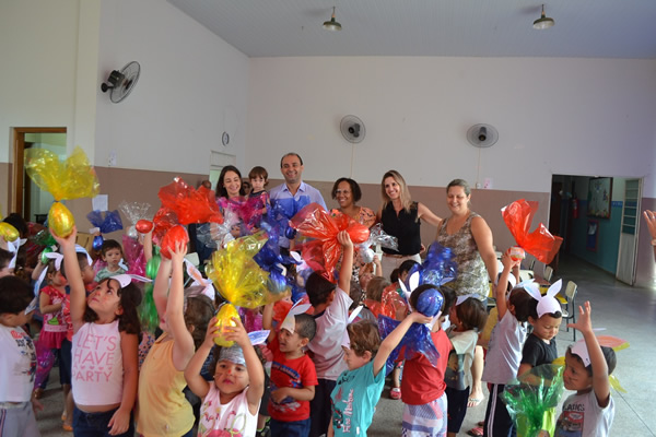 Próximas escolas - Nessa quinta-feira (17) será a vez dos alunos das escolas Cemeis José Caldeira Cardoso, Profª. Osória Lopes José Andrade e Yolanda Carolina Giglio Villela receberem os ovos de chocolate.