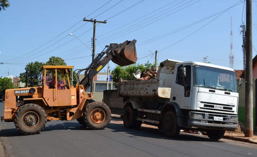 Os funcionários da Garagem Municipal realizam a retirada de entulhos e demais materiais nas ruas da região oeste. O Mutirão “Bota Fora” atende os bairros Alvorada, Califórnia, Sanderson, Vila Lourdes, Elizabeth, Casagrande, Esplanada, Progresso, Talarico, Marajá, Eldorado, Canadá, Júlia e Cruzeiro.