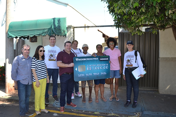A Prefeitura apoia o combate ao mosquito Aedes aegypti. O Departamento de Saúde, em parceria com a Siccob Credicitrus, contemplou com o prêmio de R$ 1 mil, quatro munícipes sorteados pela campanha “Cooperação Contra a Dengue”. O sorteio foi realizado na sexta-feira (18), na Credicitrus e a visita as residências sorteadas no sábado (19).