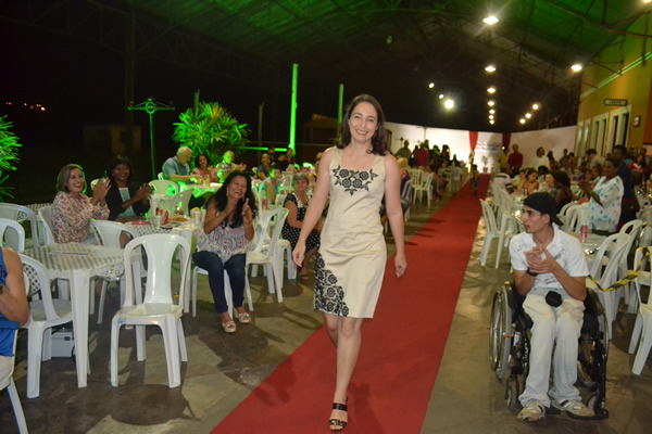 A primeira dama, Aline Galvão, também desfilou e apresentou um vestido feito pelas alunas do curso de costura do FSS