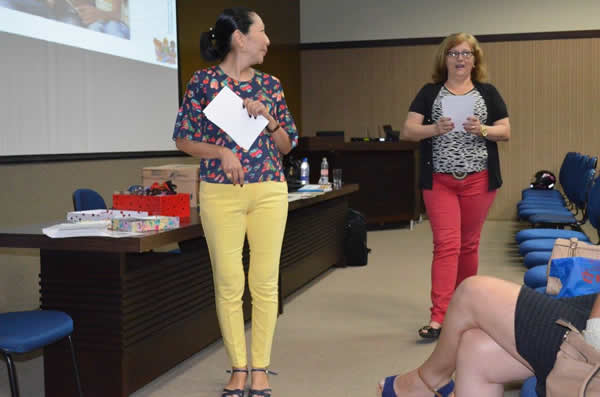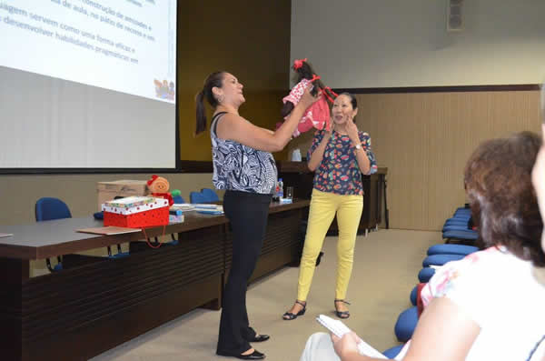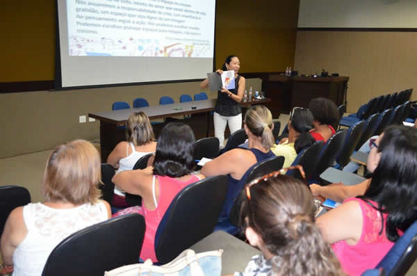 Na sexta-feira (15), os professores da 2ª etapa da educação infantil e os gestores discutiram a “Linguagem Oral e Escrita e a aproximação da linguagem na educação infantil com a inserção de contos, músicas e histórias”. A pedagoga enfatizou que a escola deve promover situações de aprendizagens utilizando atividades lúdicas, uma vez que, na Educação Infantil, a intenção é aproximar a criança da linguagem escrita.