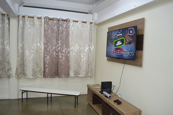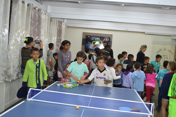 A sala conta com dois equipamentos para a prática do tênis de mesa, uma mesa de Aero Hockey, um videogame Xbox 360 e uma TV 50 polegadas, que podem ser utilizados pelos 450 alunos das 7h às 17h. Adquiridos no valor de mais de R$ 20 mil com recursos do Programa Federal Mais Educação, subvenção municipal e recursos próprios.