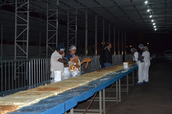Cerca de 25 profissionais da Central de Alimentação participaram da confecção que durou sete horas, entre padeiros, cozinheiros e nutricionista. "Todo ano acompanho a confecção durante a madrugada. Percebo o carinho que cada um deles dedica a este projeto e, por isso, o resultado é tão bom. Só tenho a agradecer", elogia o prefeito.