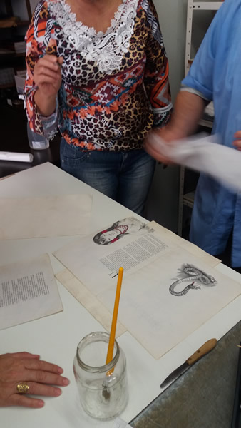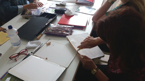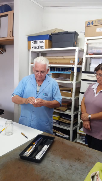 Durante o encontro os participantes tiveram a oportunidade de levarem livros que compõem o acervo da escola em diferentes estágios de deterioração para poderem colocar a "mão na massa" e realizar os reparos, conforme as orientações recebidas. Os assuntos abordados foram bem dinâmicos e práticos com efetiva participação dos profissionais envolvidos.