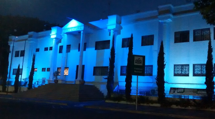 A fachada da Prefeitura de Bebedouro recebeu luzes de iluminação na cor azul em uma referência ao Novembro Azul, mês de conscientização e informação aos homens sobre a importância dos cuidados com a saúde, em especial do câncer de próstata.