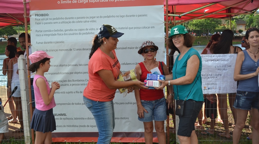 Para se divertir nos pedalinhos basta trocar dois litros de leite longa vida, ou dois quilos de feijão ou de arroz por um convite que dá direito ao passeio de dois adultos ou um adulto e duas crianças, respeitadas as normas de segurança.