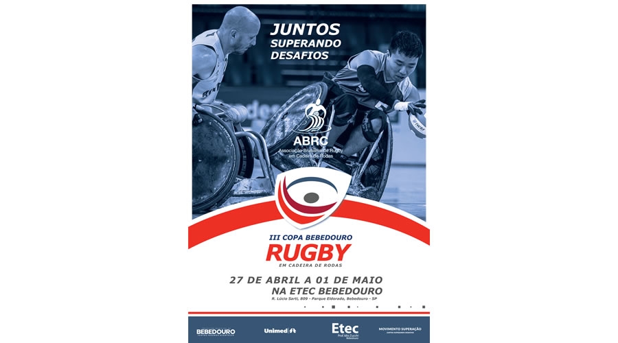 A Prefeitura de Bebedouro apoia a realização da 3ª Copa de Rugby sobre Cadeira de Rodas, organizada pelo Movimento Superação em parceria com a ABRC (Associação Brasileira de Rugby em Cadeira de Rodas) e a ETEC “Professor Ídio Zucchi”.