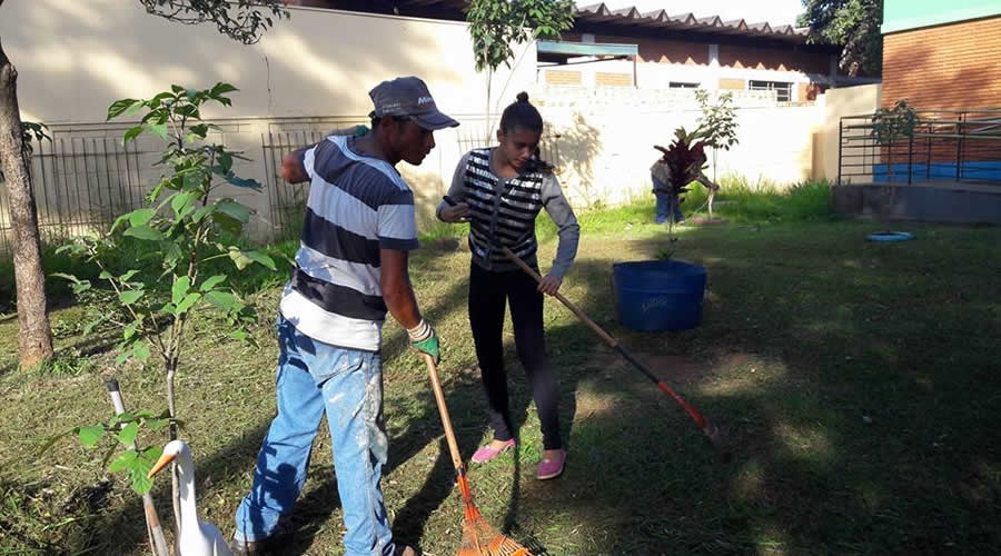 Além de realizarem a poda de árvores, roçada de grama, pintura de pneus e demais arranjos decorativos, os voluntários orientaram os funcionários da escola para multiplicar aos pais dos alunos, a importância de manter a cidade sempre limpa.