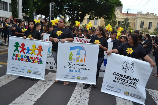 Conscientizando sobre o dia 18 de Maio, Dia Nacional de Combate ao Abuso e a Exploração Sexual contra Crianças e Adolescentes, sob o lema, “Esquecer é Permitir, Lembrar é Combater”, a Prefeitura de Bebedouro por meio da Rede Criança e Adolescente em parceria com o CREAS (Centro de Referência Especializado de Assistência Social), escolas estaduais e municipais realizaram na quinta-feira, 18 de maio, com saída e chegada em frente a Prefeitura, uma mobilização incluindo passeata e panfletagem que passou pelas ruas do centro.