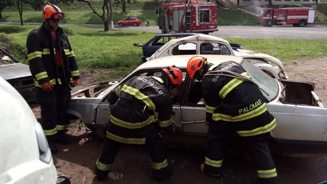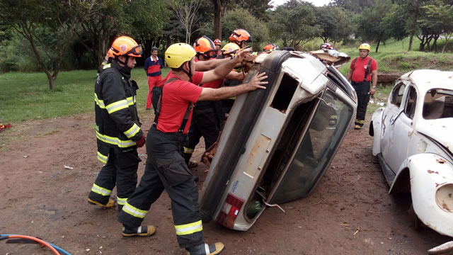 No treinamento foram utilizadas sucatas de carros fornecidas pela Prefeitura e por uma empresa de guincho