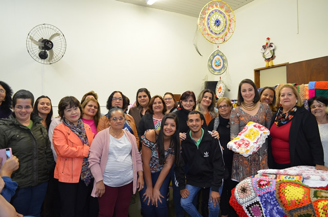 O encerramento da campanha “Mãos de Fada” ocorreu com a presença de D. Antônia, que emprestou seu sorriso e vivacidade para ilustrar os cartazes. A ação culminou com a confecção de mantas, gorros e cachecóis em lã, que serão entregues aos idosos dos asilos da cidade.