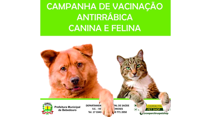 Agosto é mês de vacinar cães e gatos, a Prefeitura de Bebedouro, por meio Vigilância de Vetores e Zoonoses, prepara a Campanha de Vacinação Antirrábica, imunizando animais contra a doença que pode matar e ser transmitida aos humanos.