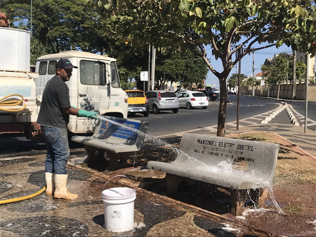 Os funcionários da Garagem Municipal realizaram as podas de árvores, limpeza dos bancos, pintura de guias e retirada de materiais de propaganda dos postes, garantindo espaços mais limpos e higiênicos. “Com essas mudanças a população poderá aproveitar melhor os espaços públicos, garantindo que as famílias utilizem as praças da cidade como espaço de lazer”, afirma o diretor da Garagem Municipal, Luiz Carlos.